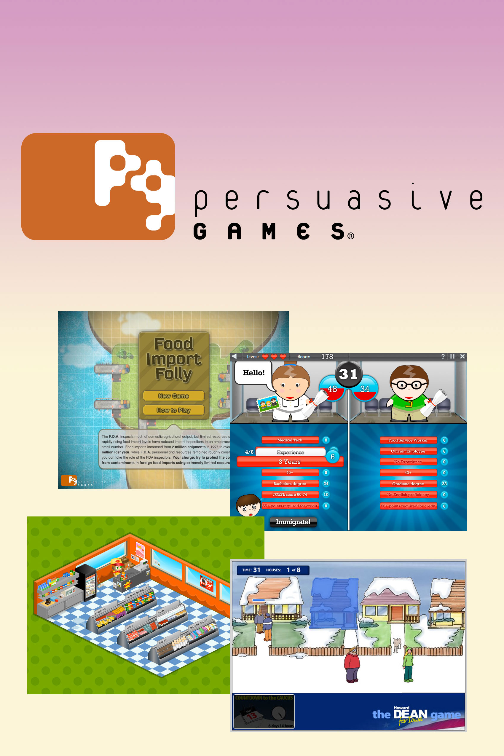 Persuasive Games designs, builds, and distributes videogames for persuasion, instruction, and activism. It also offers business, legal, content, and design consulting.